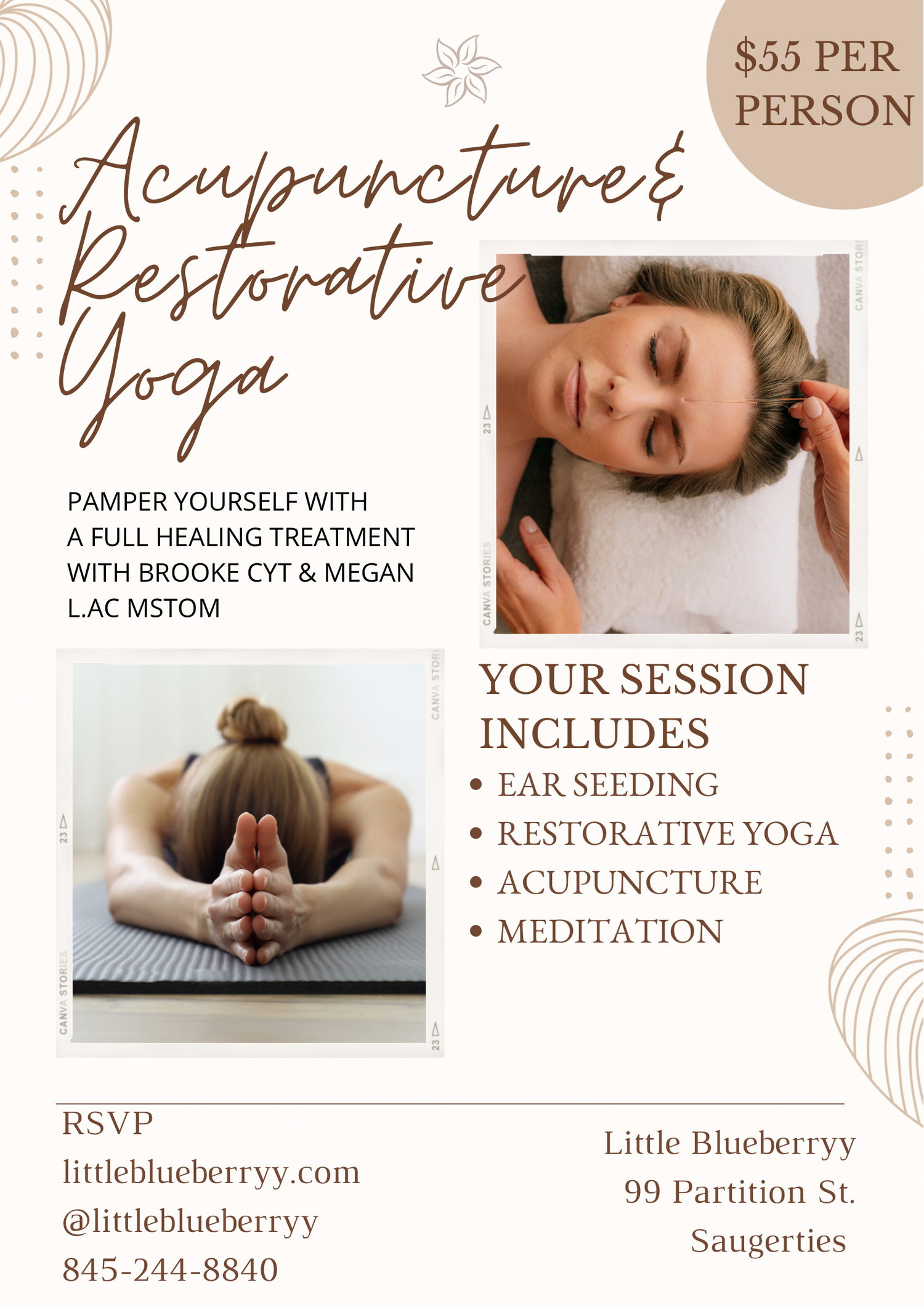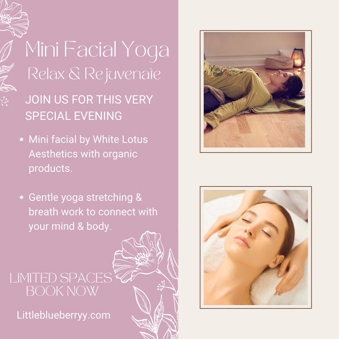 Enjoy a nourishing organic mini facial with Kristin from White Lotus Aesthetics and a restorative yoga class with Brooke.