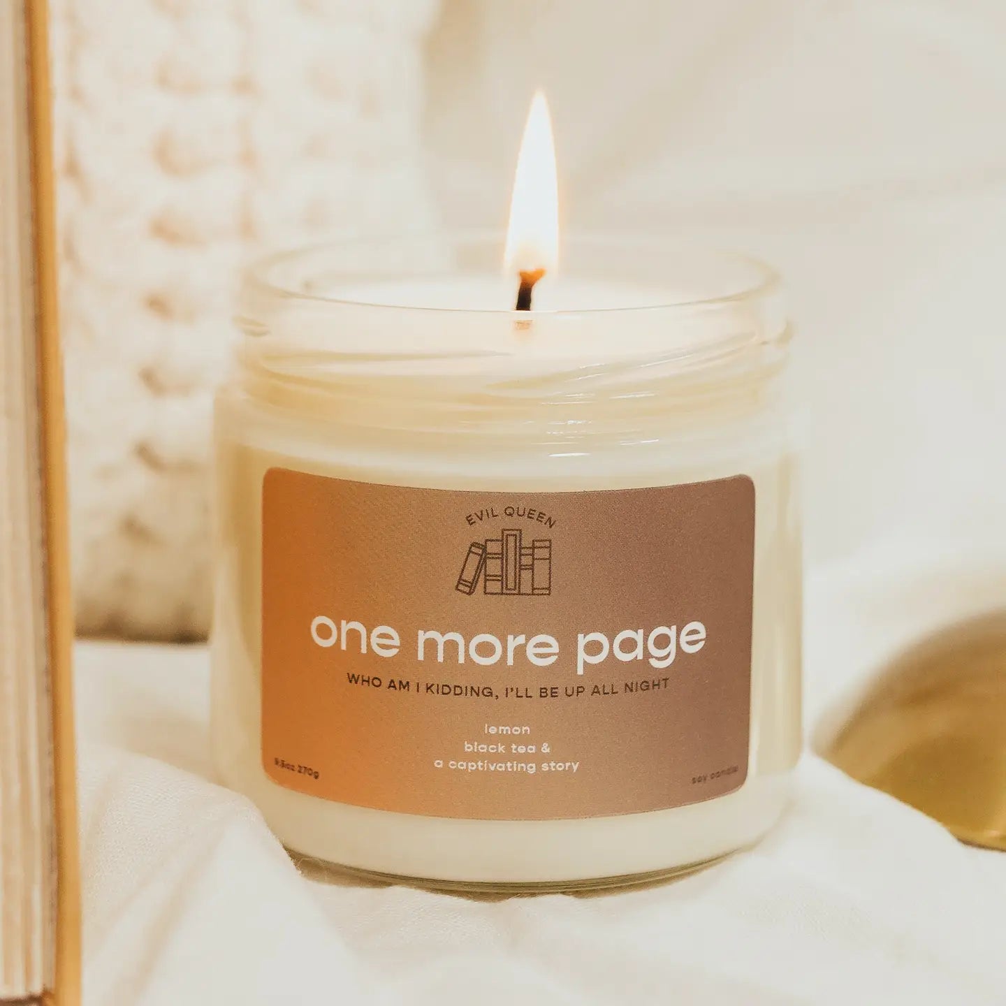 Top: Citrus, Lemon Middle: Lavender, Jasmine Bottom: Cedar, Wood, Musk Light this one to keep you company while you turn pages all night. Clean, crisp notes of orange and fresh squeezed lemon are followed with subtle hints of jasmine, lavender, and light rose. A base consisting of musk and woody nuances balance the blend. Contains lemon essential oil. * 12 oz jar full of 100% soy wax from American grown soy beans * Handmade and poured with love and sass * Burn time of 50+ hours when burned properly * Vegan. Phthalate free. Cotton wicks. No bullshit.